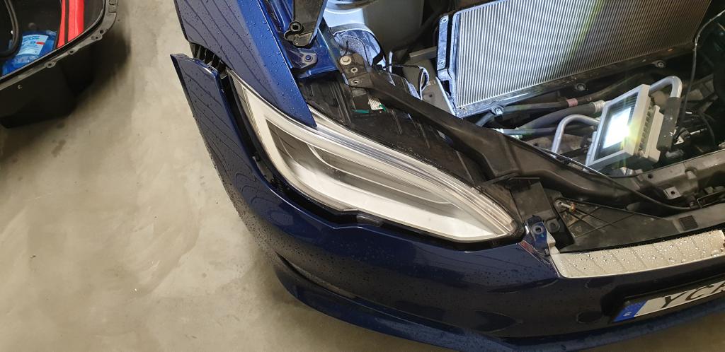 Tätmassan som håller frontglaset (som är i plast) och strålkastarhuset är limmade för bästa täthet. Varmluftpistol, plast-bändar-verktyg och trubbig/sliten skruvmejsel fram...och just det...nämnde jag tålamod?! :!: :!: :!: Just detta är därför Tesla byter hela skiten...och det förstår jag. :D Isärta...
