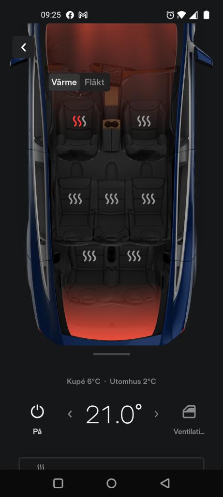 Kanske är sen på bollen men nu kan man även sätta på kyla (ventilation) i sätena från appen, perfekt inför sommaren!