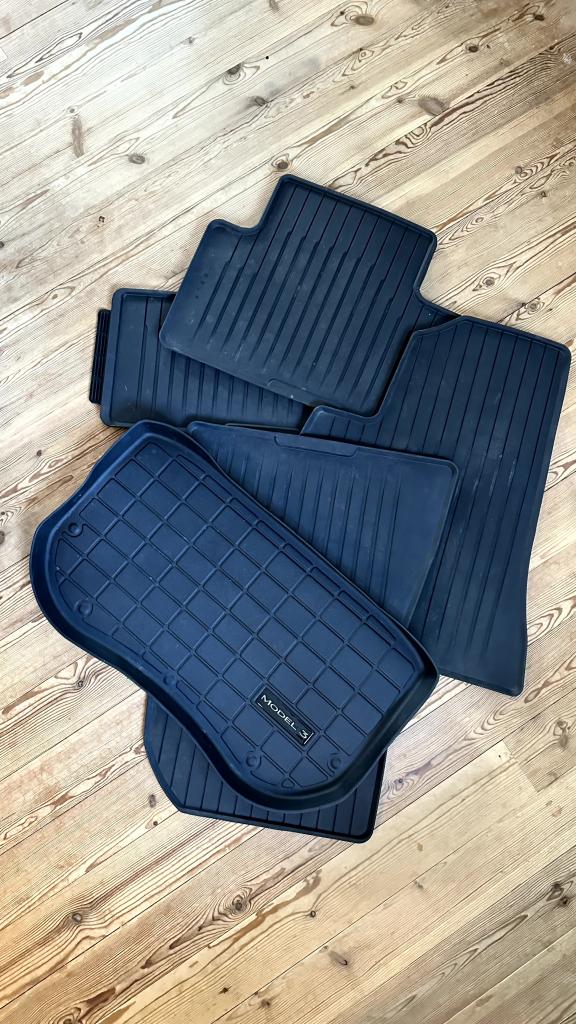 Säljer Tesla Model 3 original gummimattor för kupén och Tesla original skyddsmattor för frunk och bagaget. Fint skick på allt. Lägger också med helt oanvända original Tesla mjuka filtmattor.
