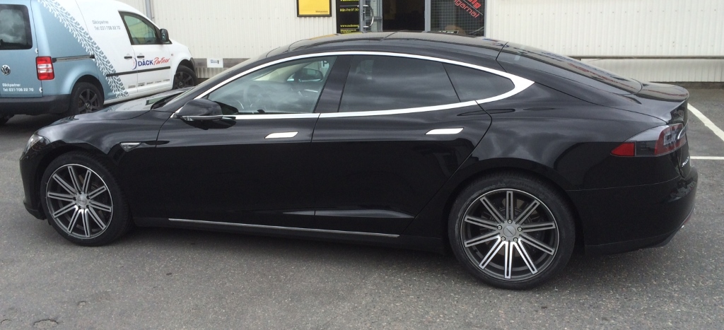 Wester skrev: 20" Vossen fälgar. 245 fram samt 285 bak. Funkar kanon men den drar en del mer el.