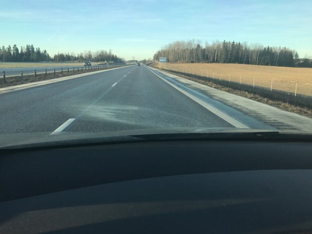 Min spolare tvättar ungefär 1/4 av vindrutan, tack och lov så är det ungefär den delen där jag har mina ögon. Resten av vindrutan är en enda vit saltskorpa just nu. Bättre än så blir det inte, såvida man inte har med sig fönsterputs och fiberduk.