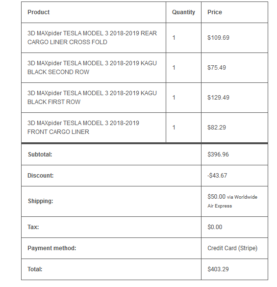 403 dollar ink. frakt för fram, bak, frunk och trunk med rabattkod "tmc" (tesla motors club).