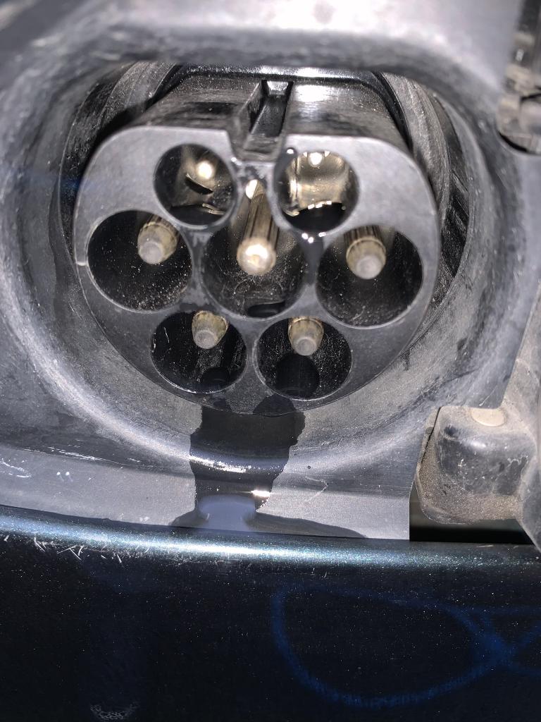Kontakten är väl gjord för att tåla väder å vind ? Lite vatten som på bilden har aldrig hindrat mig från att koppla in. Det kan se betydligt värre ut. På resa i dåligt väder är det ju oundvikligt med lite vatten där.