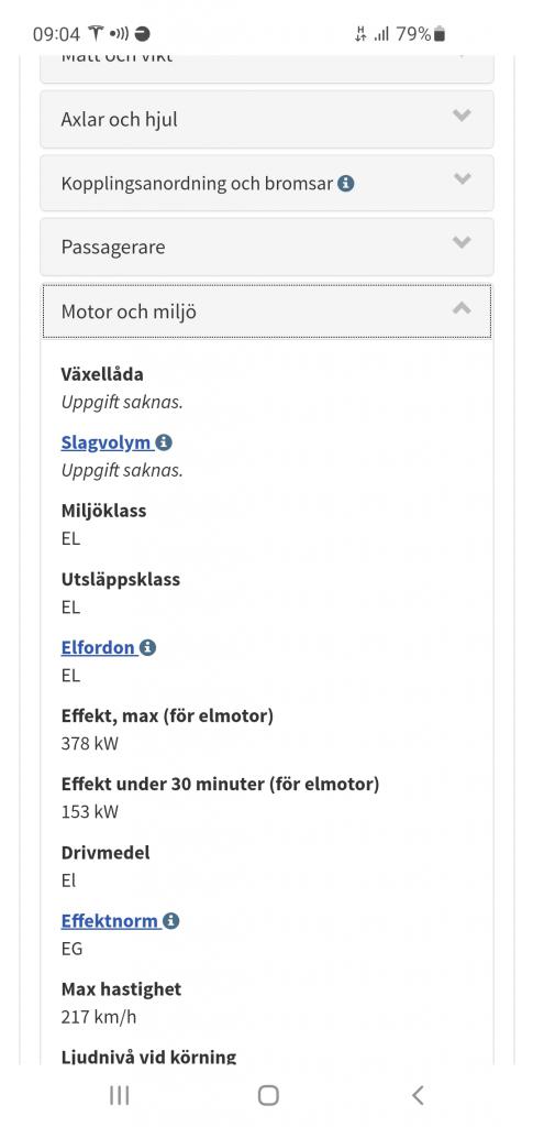 Ni har 254 kW för min bil, men på Transportstyrelsen ser det ut så här:
