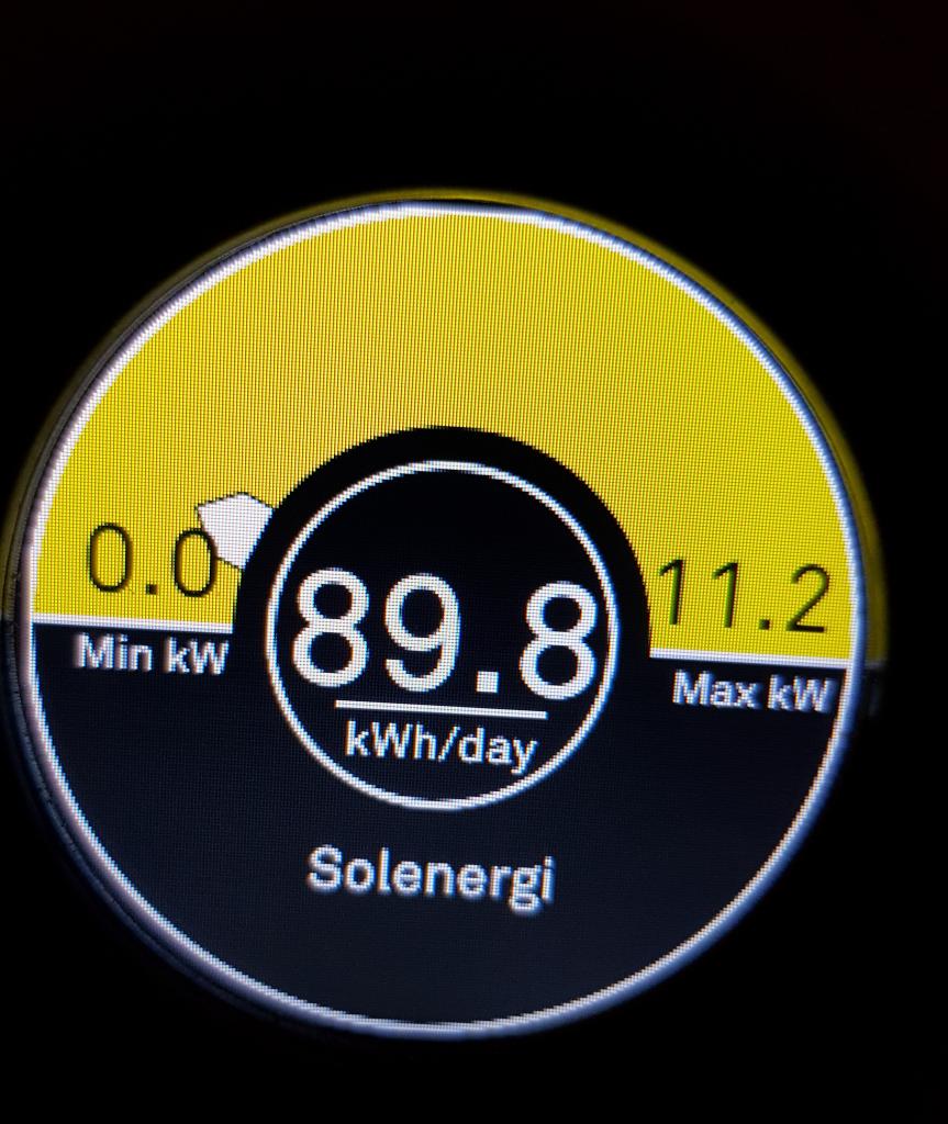Då är 2 kW laddeffekt möjlig soliga sommardagar.