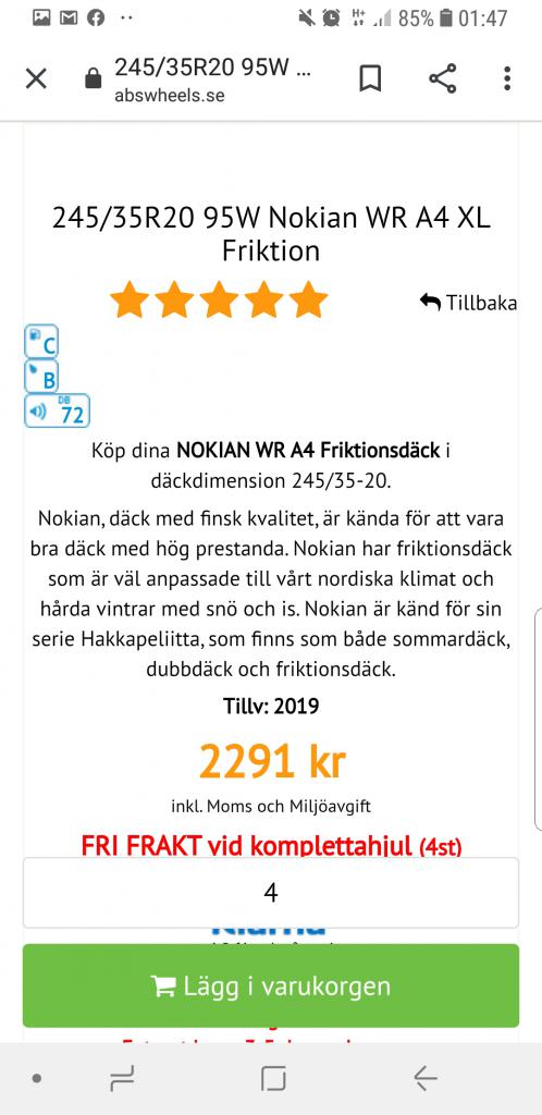 Bäst deal hittills enl skärmklipp Nokian Wr4 någon som testat dem?