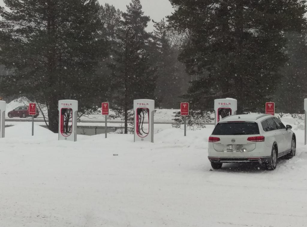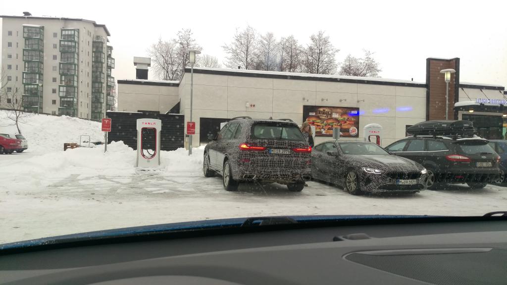 Det rullar in ett gäng tyska bilar kamo färg ställer sig på supercharger i Örnsköldsvik.
