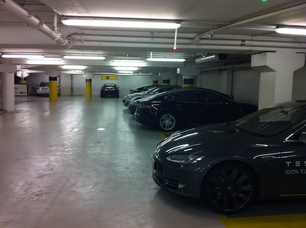 Så här ser det ut på Tesla i Täby garage plan -3 långt under jord (22/5). Ingenting fungerar av radio, 3G eller GPS.