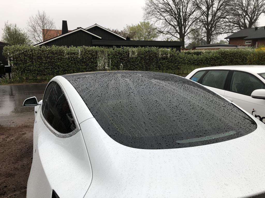 Resultatet blev fantastiskt. Firmans första Model 3 så jag var lite provskott. Hela bakrutan och sidorutorna fick 20 %. Då är det inte så stor skillnad mot glaset över framsätena heller även om det verkar så på detta foto, men det skyller jag kameran för. Om jag tröttnar får jag väl komplettera.