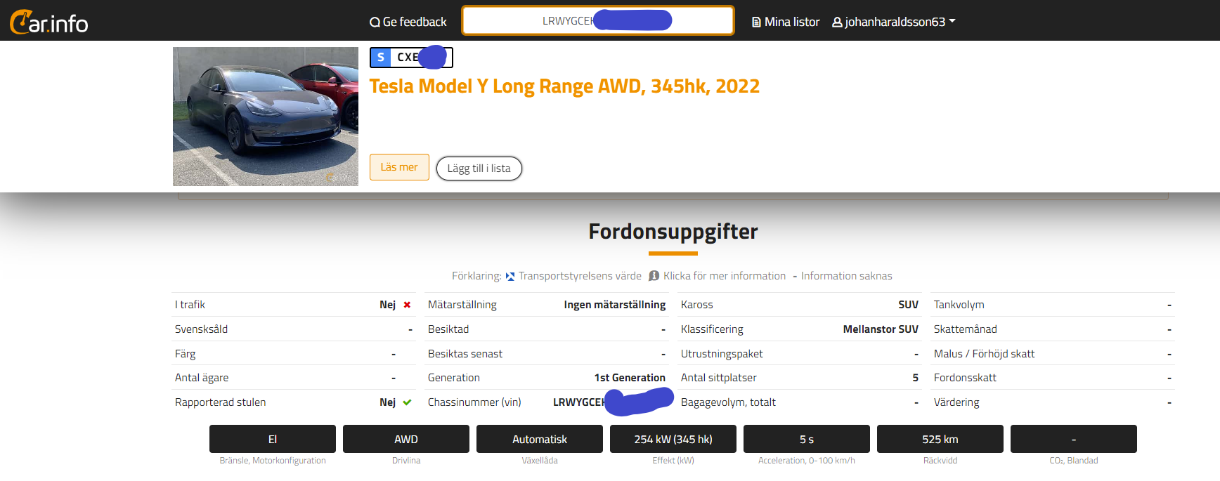 Ska man kunna söka på VIN helt enkelt och få upp bilen? Fick inte fram något nu när jag testade, men å andra sidan är det ju inte "senare idag" än kanske