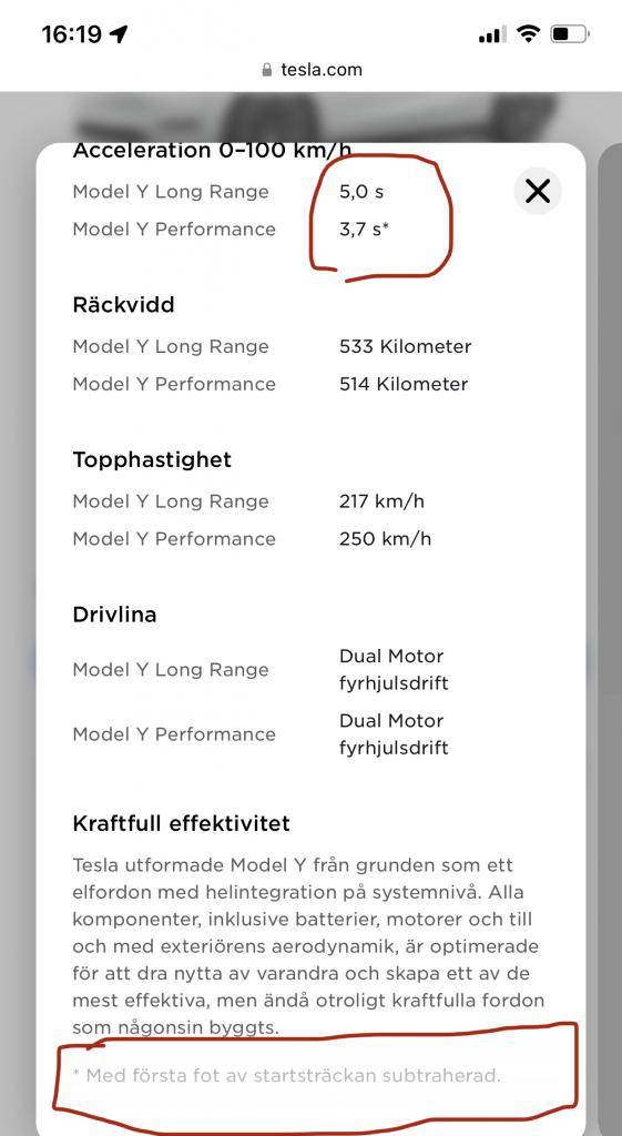 Lite ohederligt är det väl allt? Ska skilja 0,6 sekunder på 0-100 mellan Model 3 performance och BMW i4 M50. I verkligheten så är det inte riktigt så vad det verkar. Det är oerhört jämnt i början med viss, men inte mycket, fördel för Teslan. Däremot är i4:an snabbare väl uppe i fart.hanseman skrev:Ja det är vanligt förekommande av flera biltillverkare. Inget trolleri. Inte ohederligt. Föreslår att du googlar om du vill veta mer än att killgissa dig fram.Nicke Nyfiken skrev:Ja Tesla har trollat med 0-100 tiderna på sina Performance bilar under många år. Tror det började när P85D började säljas. För att uppnå den utlovade 0-100 tiden som angavs när bilen presenterades, blev man i verkligheten tvungen att ändra mätmetod, vilket verkar minska tiden med runt 0,2 sekunder.backe skrev:För att göra det extra smidigt så mäter Tesla 0-100 olika mellan LR och P också...