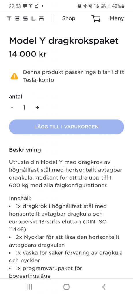 Nej, man måste ha en bil för att kunna beställa en dragkrok.Tegnell skrev:Hur beställer ni?R2_m3 skrev:Jag lyckades beställa en igår så bara hoppas den kommer tills 11:e april då jag bokat installation i Segeltorp.Honkan skrev:Har ni hört något om dragkrok om det finns hemma ??
