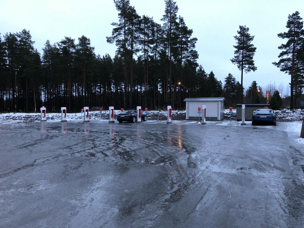 Åkte Linköping-Piteå igår (ej med Tesla), och i Sillekrog, Infracity, Fullerö, Sundsvall, Ö-vik och Skellefteå var det få eller inga bilar som laddare när jag åkte förbi (start 5.15 ca, så passerade exempelvis genom Sthlm innan 8). Resten kollade jag inte, man ser bl.a. inte Gävle och Umeå från vägen.