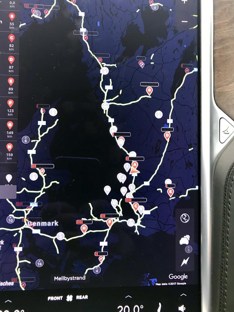 Detta är första långturen för mig och jag är väldigt förvånad att inte fler laddade. Jag befarade det värsta en sån här trafikintensiv dag. Det var ju köigt på E4 norrut vid Stockholm. Positivt överraskad!