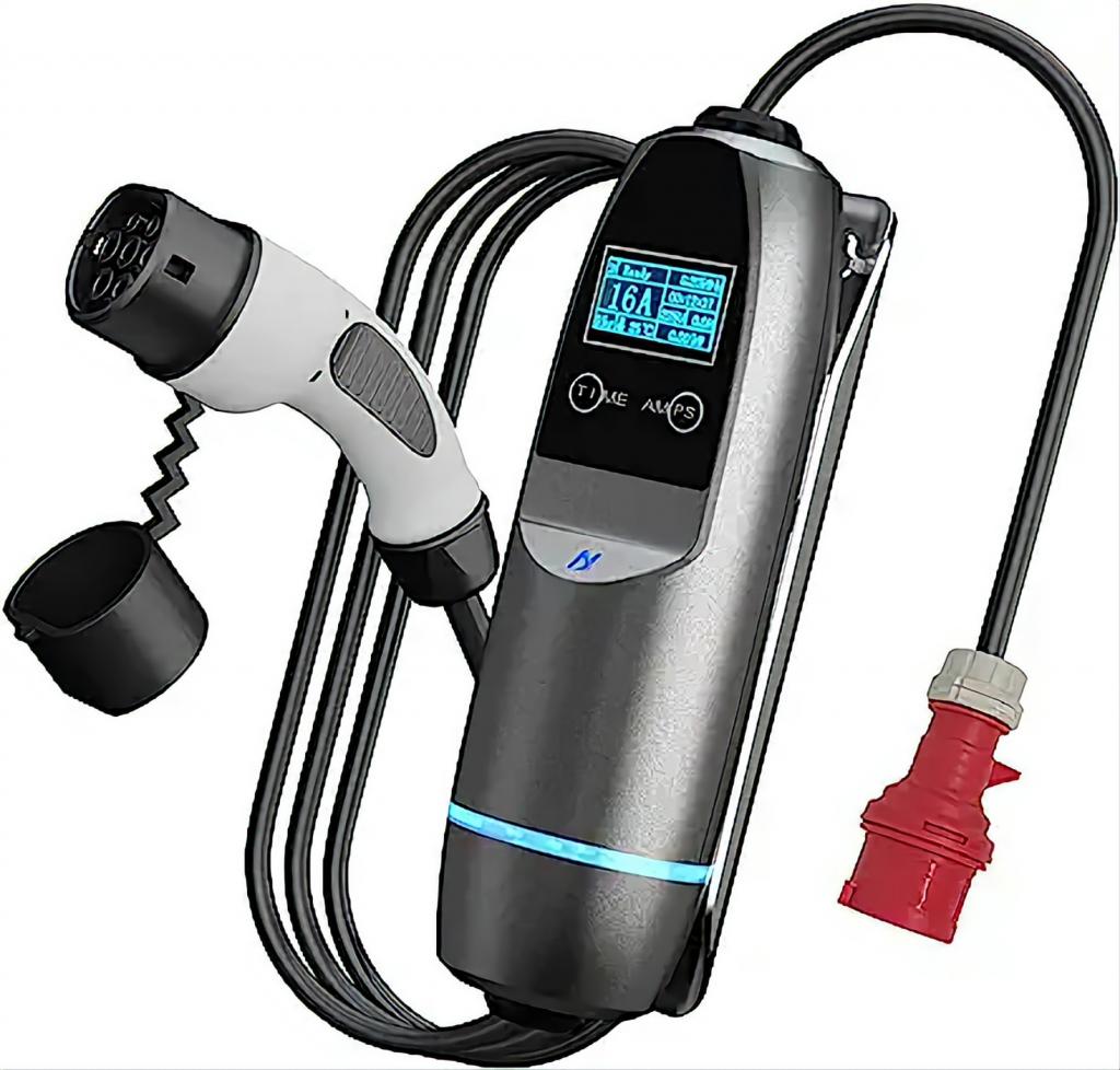 Med övergångsadapter kan du använda den medföljande på röd/Cee/3-fas, men endast en fas kommer nyttjas och Max 3,7kW erhållas.