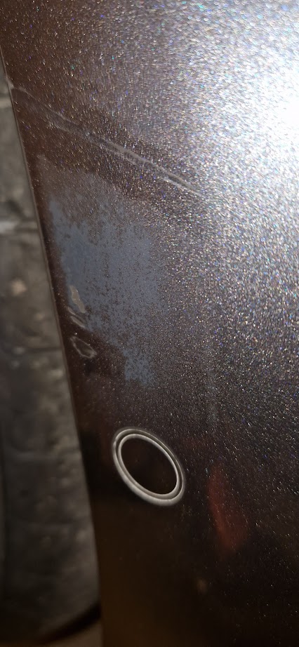 Så vad händer om man går på förtidigt, jo färgen lossnar igen! Provade ett par gånger men skiten fastnade inte och ändå gjorde jag rent innan. Bör tilläggas att på ett ställe blev det okej, men det var ett litet märke jag lagade. Tyvärr så tror jag att repan, som var djup, skulle ha eller borde ha si-så-där en torktid på 12h eller mer. Jag fattade detta mycket senare.