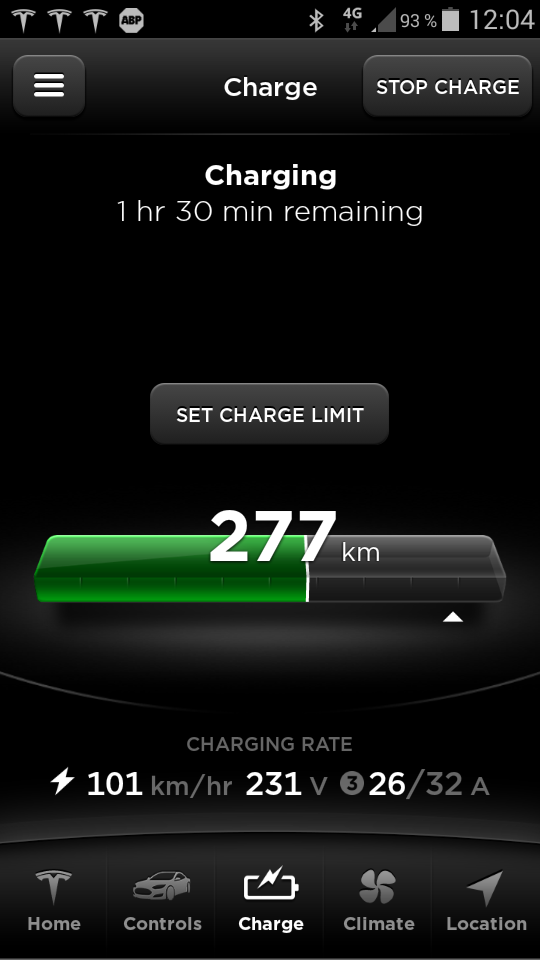 Nu blir det helgalet. Bilen säger att den laddar med 26A fast den är inställd på 32A. Samtidigt påstår bilen att den laddar med 101km/timme, som inte kan stämma om den verkligen bara laddar med bara 26A, då borde det vara 80km/timme. Dessutom skulle den väl vara färdig inom mindre än 1,5 timme då om det gade varit 101km/timme. Var är det som händer??? Är range-beräkningen fel? Den verkar visa alldeles för mycket.