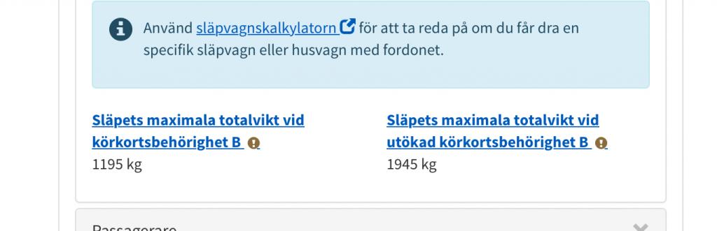 Släpets maximala totalvikt vid utökad körkortsbehörighet B