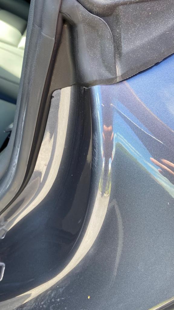 Detta kanske inte räknas som ett känt fel på nya bilar. En gummilist på bakdörrarna ligger tätt mot karossen och skrapar den känsliga lacken om den är smutsig. Bilen gjordes i mars 2019.