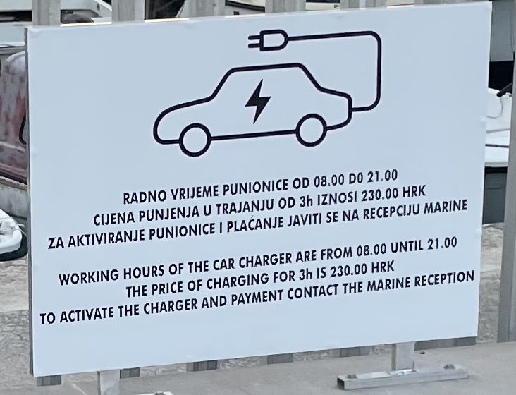 Skall finnas en annan laddare lite längre bort enligt Plugsurfing för 4.15hrk/kWh. Hotellets laddare är out of order.