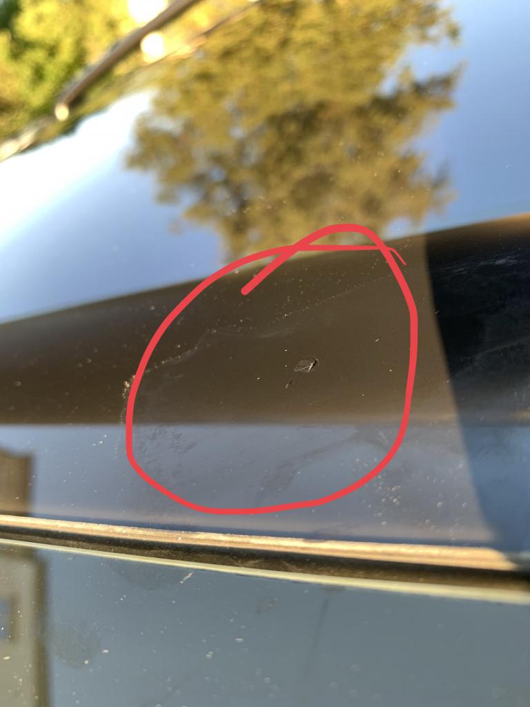 Fick ett stenskott på ett dåligt ställe här om dagen. Träffade givetvis min Model 3 på den svarta delen närmast kanten i glastaket.