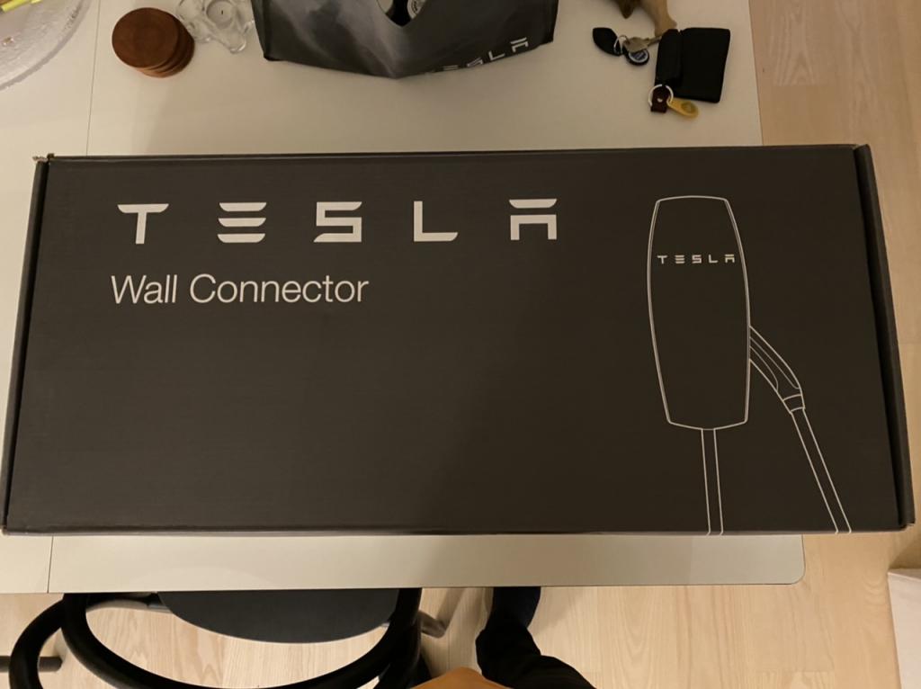 Tesla Wall Connector Signed by Elon Musk i originalförpackning från Teslas tidigare rekommendationsprogram. Mattsvart finish.