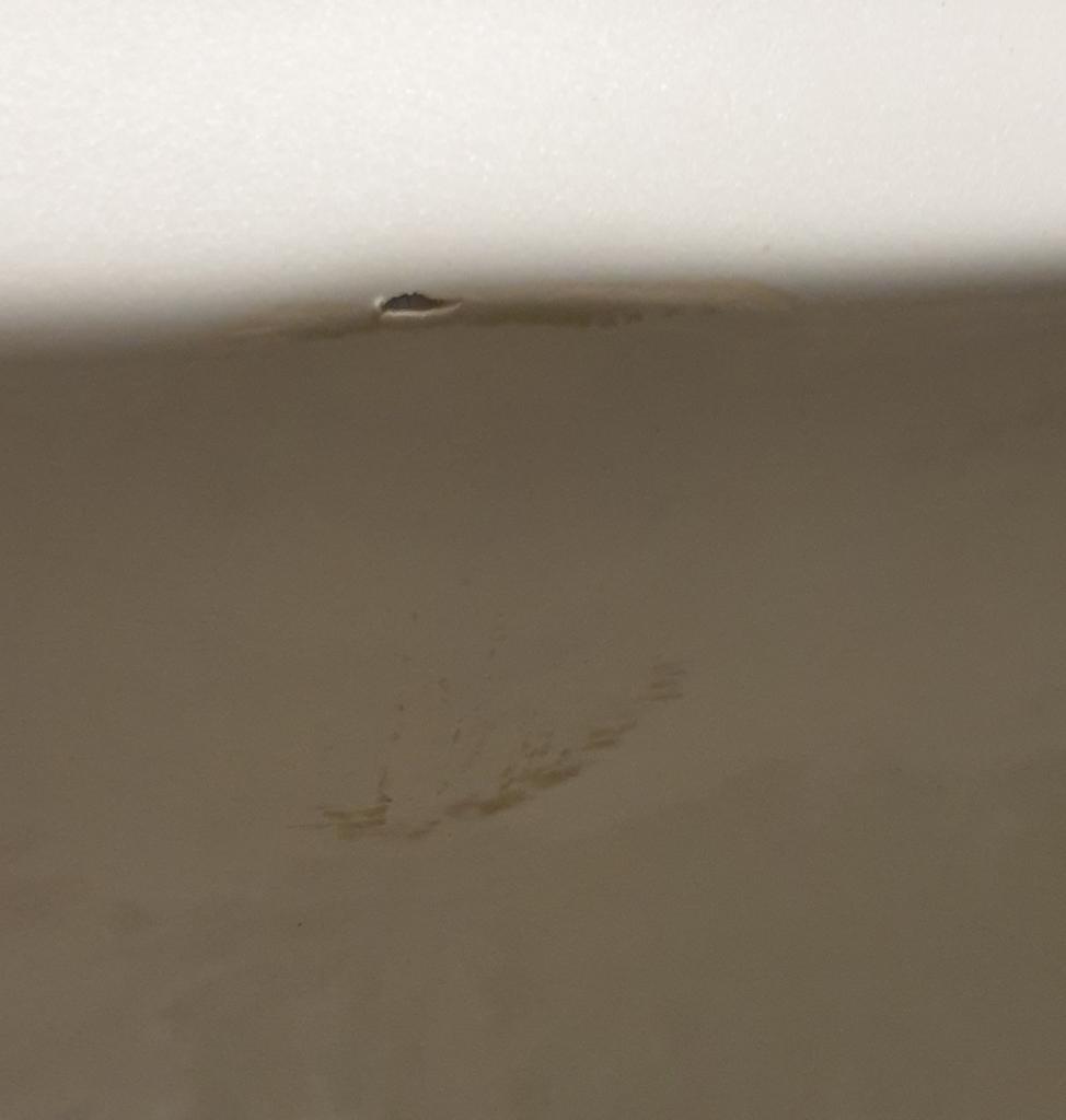 Jag ser bara det lilla märket och det duttar man enkelt i lite färg själv. Det tar nån minut eller så
