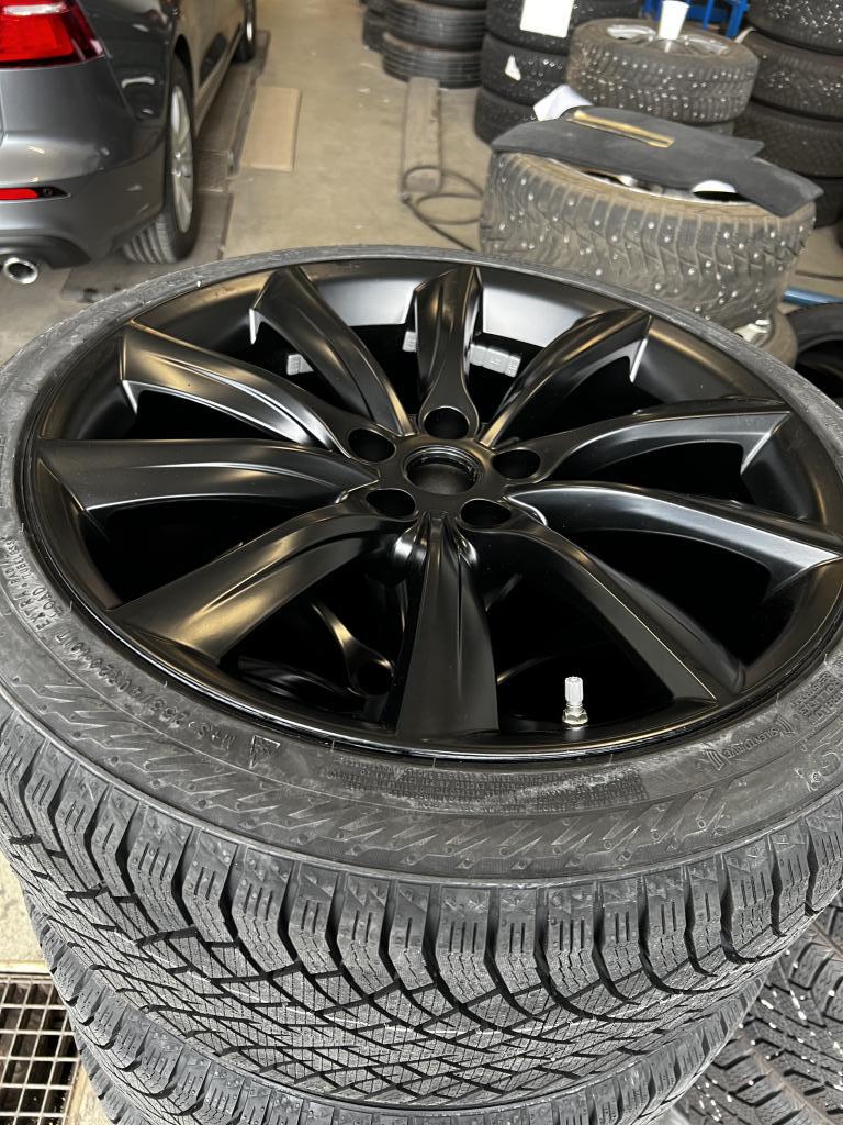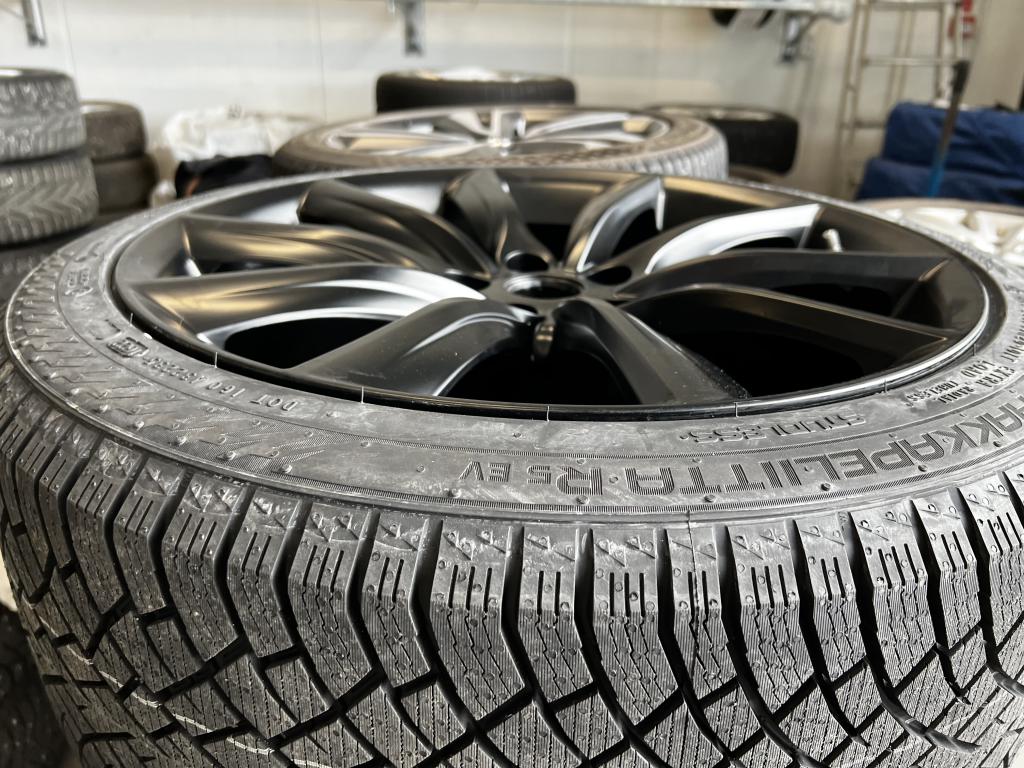 En ny färg som heter Smooth Black och är identisk med listerna runt fönstren m.m. på MY. De har Goodyear Eagle F1 asymmetric 6 i storlek 275/40-19 som skyddar fälgen extra mycket och ger gokart känsla. Ingår även BLE sensorer. Rullmotstånd klass B, vattenplaning klass A, ljudnivå klass B (skala A-E). Söker någon som vill köpa dessa kompletta hjul och även vill ställa upp på att ta lite reklambilder.