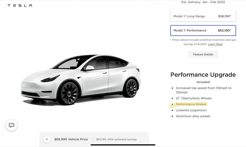 AFAIK har det varit samma bromsar på Y LR och P sedan start.