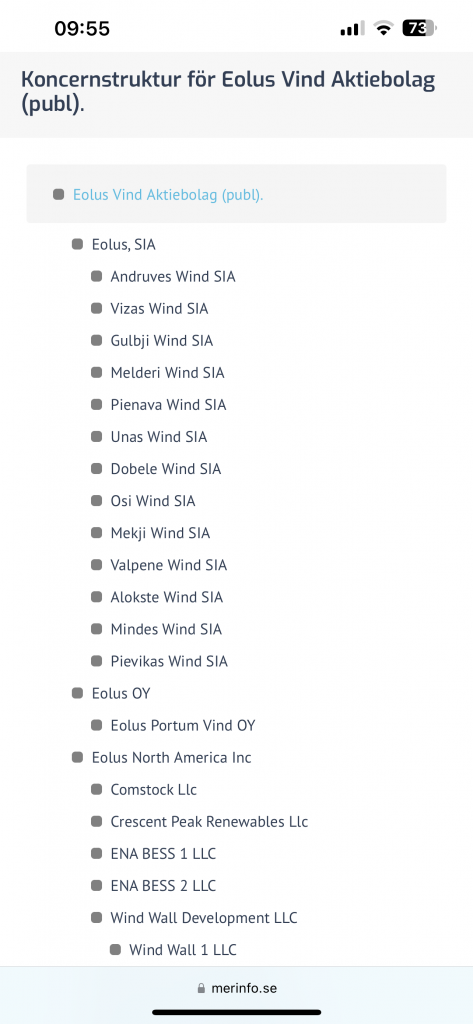Sen om man tittar på ägarstrukturen på tex Eolus vind där man lagt alla vindkraftsparker som egna dotterbolag så hade jag som markägare varit riktigt orolig man får vara bra naiv för att inte se att detta upplägget är som gjort för att sätta dotterbolaget i kk och lämna markägaren med problemet.