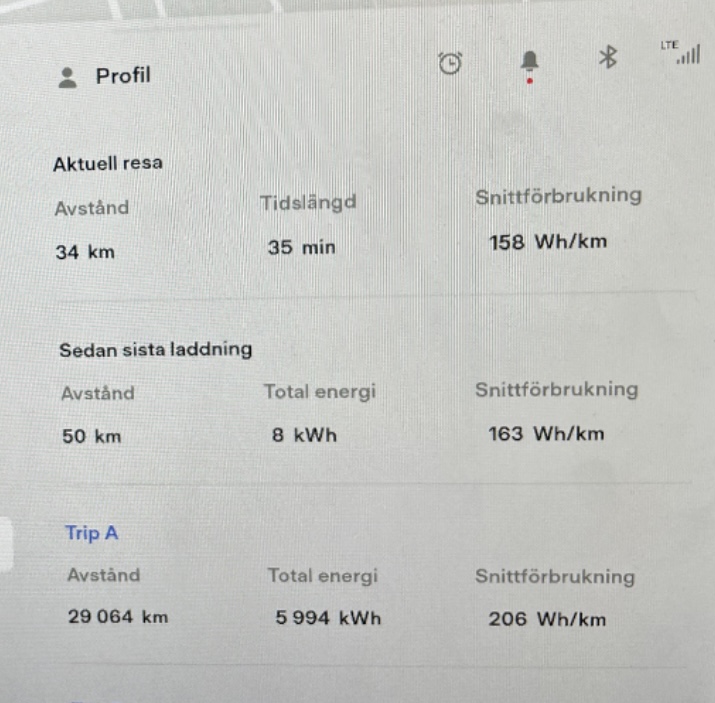 Kommer knappt ner under 200wh/km nu alltså "sedan sista laddning". Senaste 10 dagarna. Trots 60-70 mil körda.