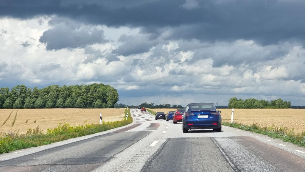 Inledningsvis flöt allt på bra. Fram till Jönköping drog bilen bara 142 Wh/km. Väl där fastnade jag i den enorma kön, strax efter kl. 17. Efter att ha masat mig fram i 20 minuter kom jag till en avfart, som gjorde det möjligt att åka små omvägar öster om E4, fram till Gränna. Därefter kunde jag fortsätta på E4. Jag valde att sätta kurs mot SuC Mantorp, i och med att den dels har ganska nära till E4, så att det tar ganska lite tid att komma, dels har den så många laddare att risken för kö är mycket liten.