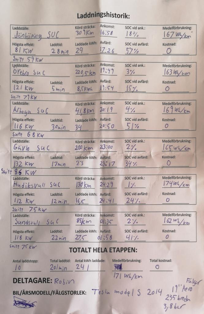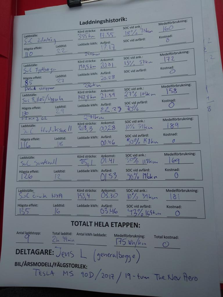 Startade 13:45 och kom fram 09:01. Total tid 19:16. Sämre tid än förra året, trots kortare laddtid.