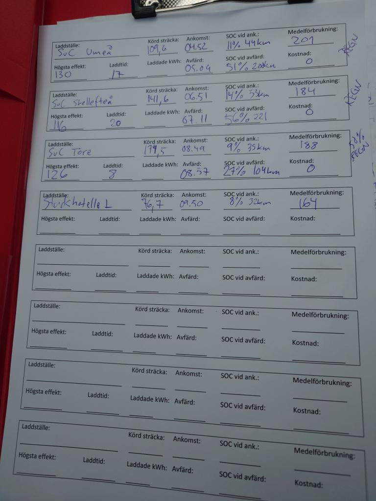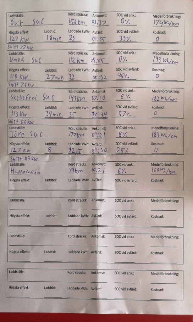 Kom fram till Haparanda med 9 % och en förbrukning på 159 Wh/km. Sträckan var 25 mil.