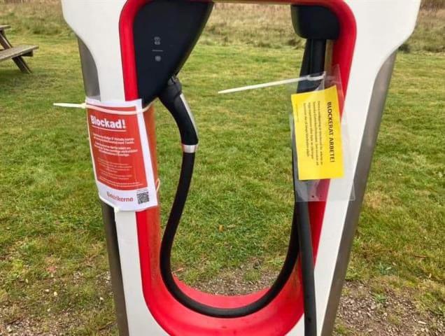 Nu har Elektrikerna satt upp skyltar på alla SuC, även på själva kontakterna som gör att det ser ut som att dom inte är i drift. Min sympati för facket i den här striden börjat helt ta slut.