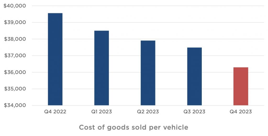 Det hade varit intressant att se grafen sträcka sig lite längre bak i tiden än drygt ett år.fth skrev: ↑01 mar 2024 14:02Tesla har ju de facto en tydlig trend av minskad kostnad per fordon, även under dom senaste inflationsåren.Fredrik j skrev: ↑01 mar 2024 12:20Ja, på något märkligt sätt verkar Teslas kostnader vara konstanta oavsett omvärld så en prisökning lägger sig omedelbart på ökade marginaler.