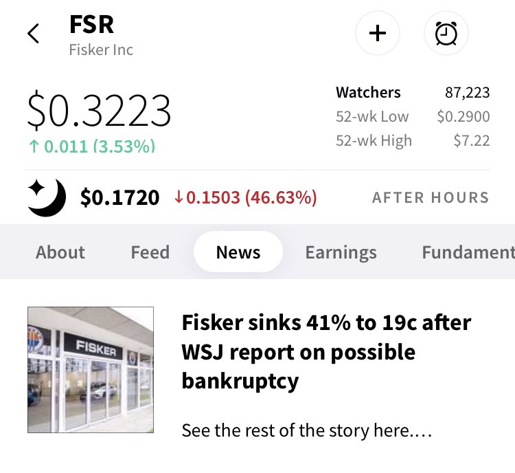 Nu är det rea på Fisker Ocean i USA (snart Europa med gissar jag) och aktien är bortplockad..rasat med 99,68% senare 6mån medan Henrik köpte sig en kåk för 250milj. Urk..