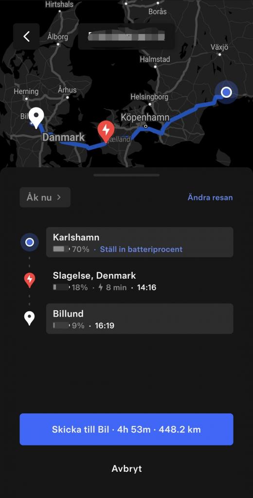 Får enklare navigering funkar även tesla appen numera - där kan man sätta planerad % vid avgång