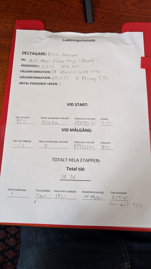 Laddade vid Sollentuna men skrotade planen på Uppsala då det blev lite för nära och valde istället Gävlebro med Cirkle K (lite snabbare än SuC som finns där). Dock skulle det visa sig vara ännu ett misstag välja något annat än tesla då Cirkle K-stolpen strulade trots att även denna var förberedd. Slutade med att jag bytte stolpe och betalade med kort.