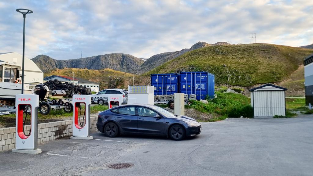 Hehe, det blev en liten omväg hem. Besökte världens nordligaste supercharger i Honningsvåg, Norge. Rekommenderas! Riktigt mäktigt landskap.