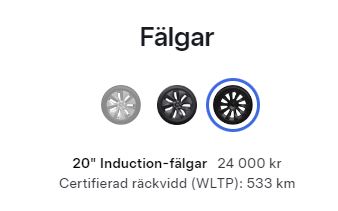 Men när man väljer fälgar så står det inom parentes vid 19" (565km) så det talet som står uppe vid modelalternativen står det alltså WLTP med icke originalfälgarna. Hoppas ni förstår vad jag menar![]()