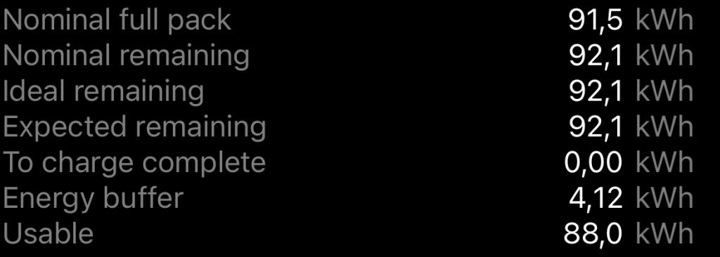 Usable är utan buffer så med buffer 86.4 kWh om den fortfarande är 4.5%. Eftersom det inte stämmer gissar jag att bilen ökat buffern?