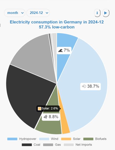 https://lowcarbonpower.org/region/Swedenchaffis75 skrev: ↑23 jan 2025 18:26Var fanns detta, vore kul att se hur Tyskland eller kanske Spanien ser ut dessa månader.. där borde de väl ändå ge en del.Off Grid Byggaren skrev: ↑23 jan 2025 17:42Det går att få fram per land, men det är knappt något alls här i norra Europa.chaffis75 skrev: ↑23 jan 2025 15:38Hur många % står solenergi i Europa i november, december, januari och februari?pefreli skrev: ↑23 jan 2025 14:49Solceller svarade för 11% av EU’s elproduktion 2024.