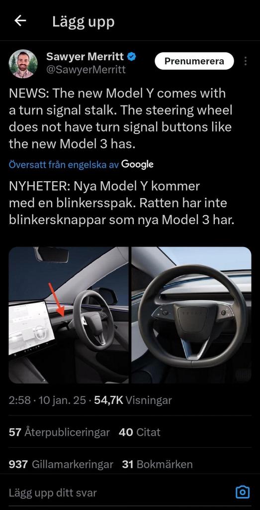 Ser inte ut att ha spakar skulle jag säga.goodyear skrev: ↑10 jan 2025 07:26Går inte riktigt att se vilken bild du menar, men om man tittar på ratten så har den inte knappar för blinkers vilket är lovande. Står också att ”blind spot lights” finns på backspeglarna, inte i A-kolumnennogren skrev: ↑10 jan 2025 06:28Kanske.