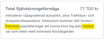 Borde då kanske heta "Eventuellt Framtida Nästan Total Självkörningsförmåga" istället?