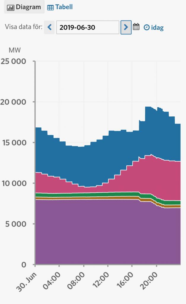 Samma dag fast kl 23 på kvällen var produktionen 4874MW
