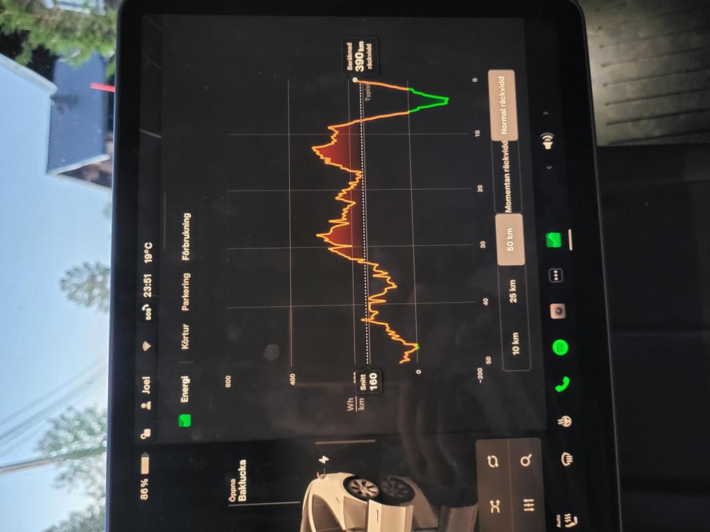 Vi behöver se laddningsnivå vid batterisymbolen + snitt + beräknad räckvidd på samma bild (med normal räckvidd).