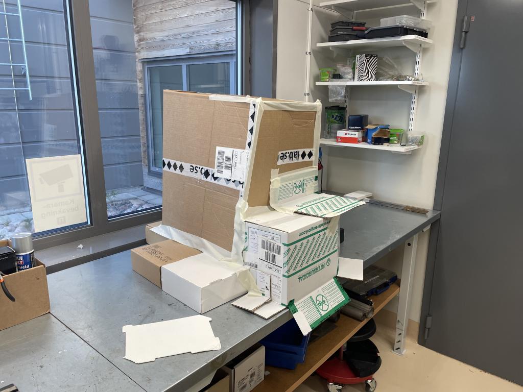 Så jag gick i soprummet och letade lagom stora kartonger, sen byggde jag en temporär enclosure: