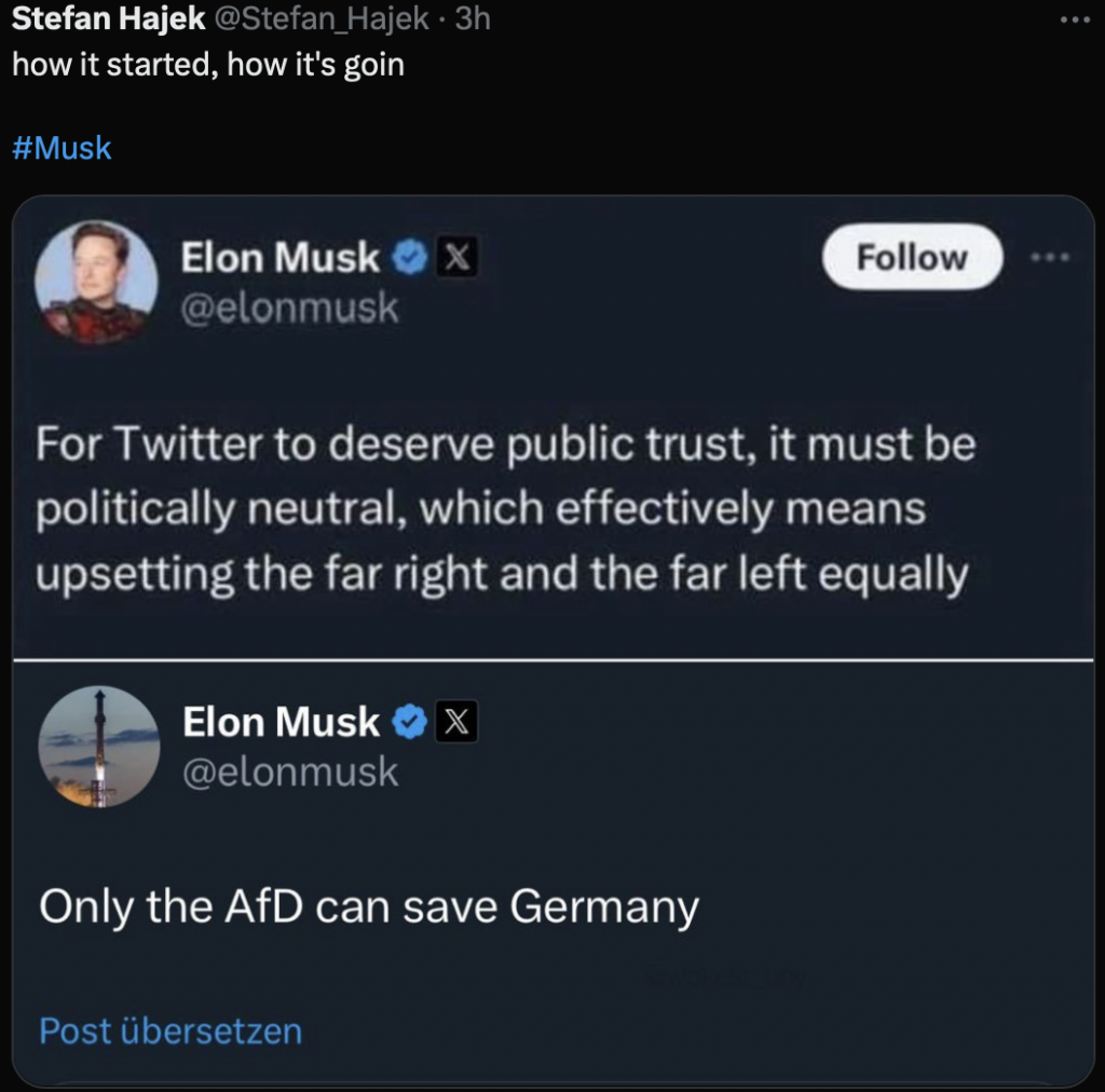 Jag har också mycket svårt för Elons AfD-uttalande, men det finns ingen motsägelse i detta.