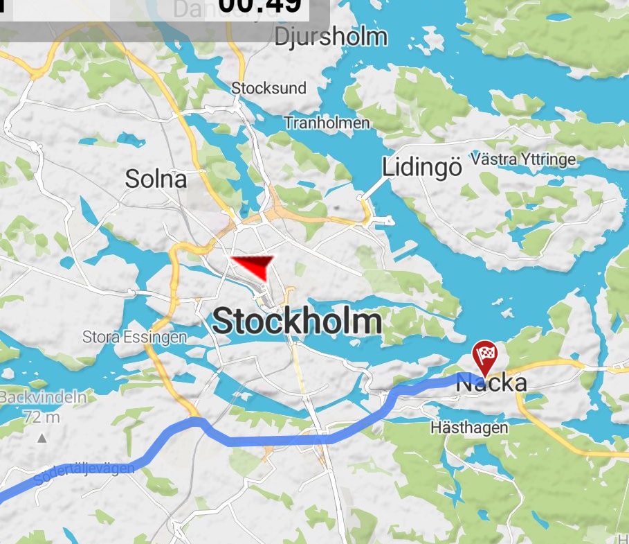 Ha, lustigt, jag angav Nacka som mål, då fick jag rätt rutt, men jag såg på ditt inlägg att man skulle över en bro till.